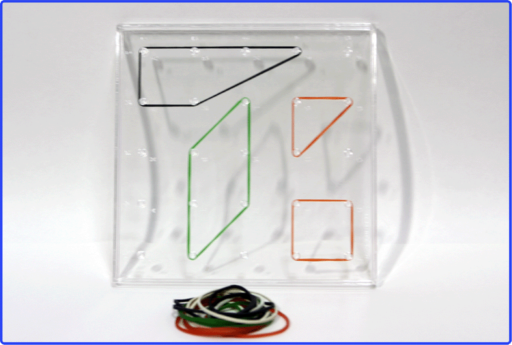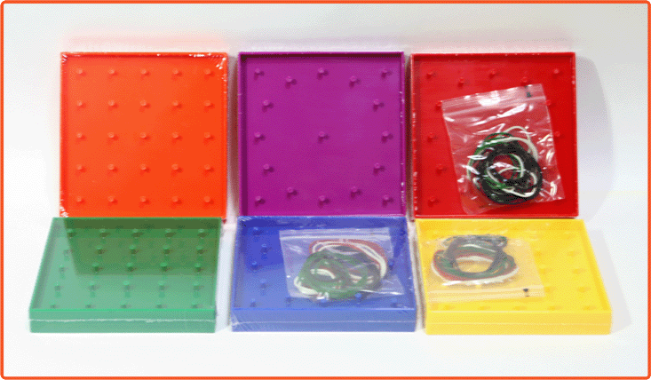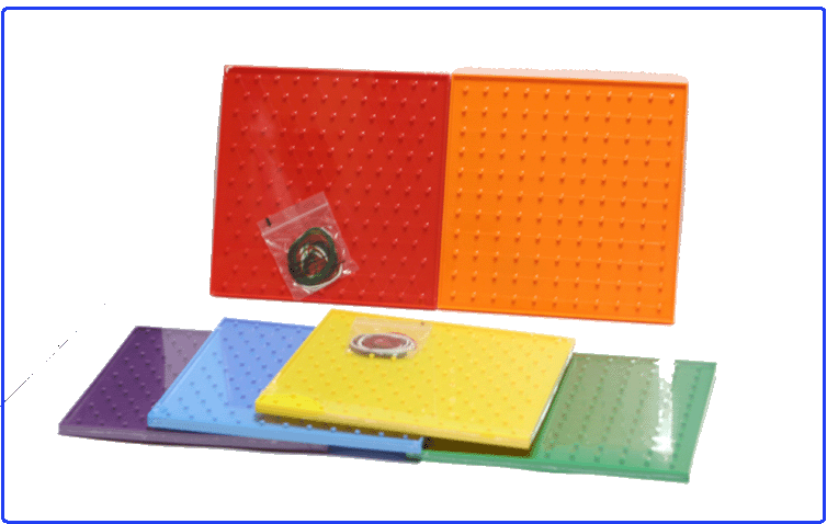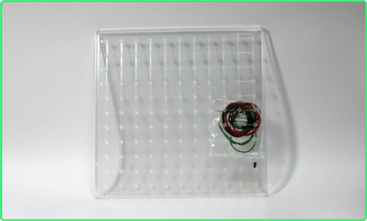(SIZE:23CM*23CM*1CM)透明單面的幾何釘板附橡皮筋. |