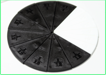 1,1/2,1/3,1/4,1/5,1/6,1/8,1/10,1/12,1/24,10個圓.