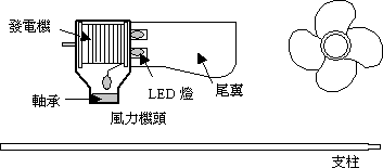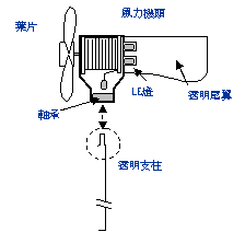 風 力 發 電 的 原 理 : 大型風力發電機通常採用"水平軸"型式,它由風葉輪、變速箱(加速齒輪箱)、發電機、偏移裝置、控制系統、塔架等部件所組成。 風葉輪的作用是將風能轉換為機械能,它是由氣體流動性能良好的葉片裝在輪軸上所組成,低速轉動的風葉輪通過傳動系統 經由加速齒輪箱來增速,將動力傳導給發電機。上述這些組件都安裝在機艙內,整個機艙由高大的塔架支撐,由於風向會 經常改變,為了有效地利用風能,必須要有自動迎風的裝置,根據風向感測儀測得的風向信號,再由控制器來控制偏移電機, 驅動小齒輪去推動塔架上的大齒輪,使整個機艙藉由此自動控制的系統,能夠保持正確對向迎風面。