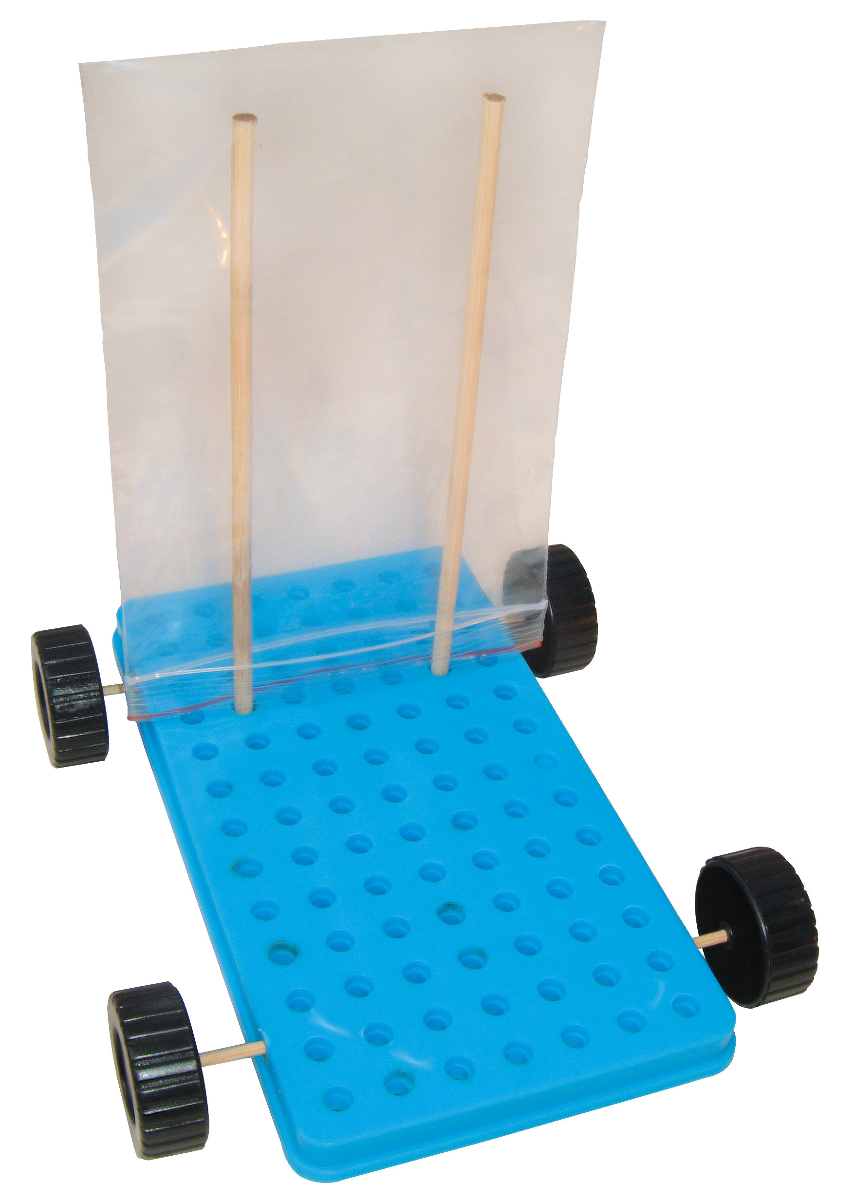 四輪車,塑膠袋,木棒
