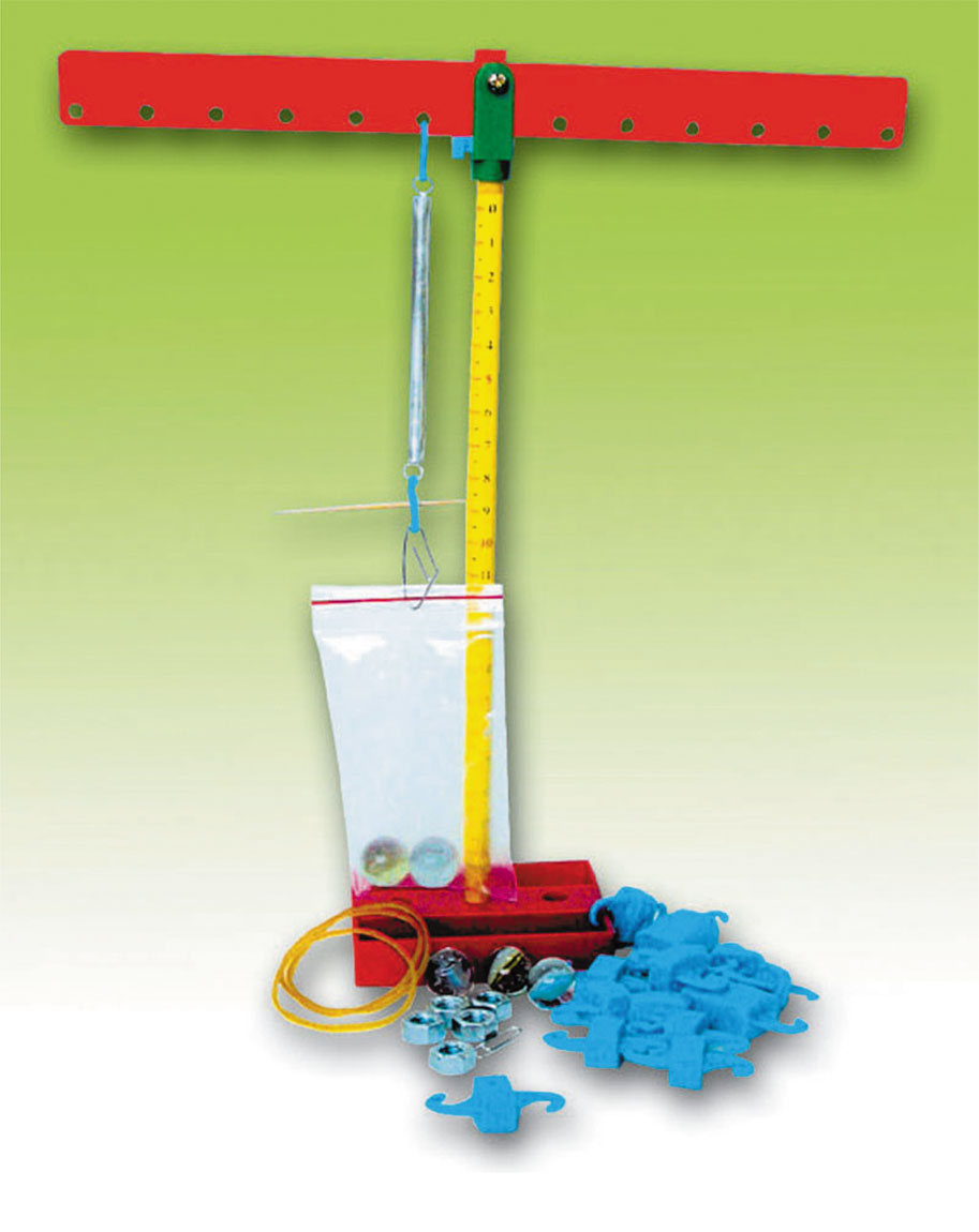 槓桿,彈簧,玻璃珠,橡皮筋,牙籤,華司或螺絲帽,砝碼...等
